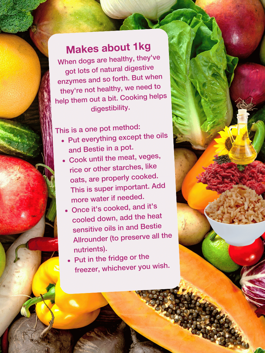 This diet features kangaroo mince and kangaroo liver, which are lean, novel protein sources that are gentle on the digestive system. Kangaroo meat is particularly beneficial for dogs with food sensitivities or those on elimination diets due to its low allergen profile.