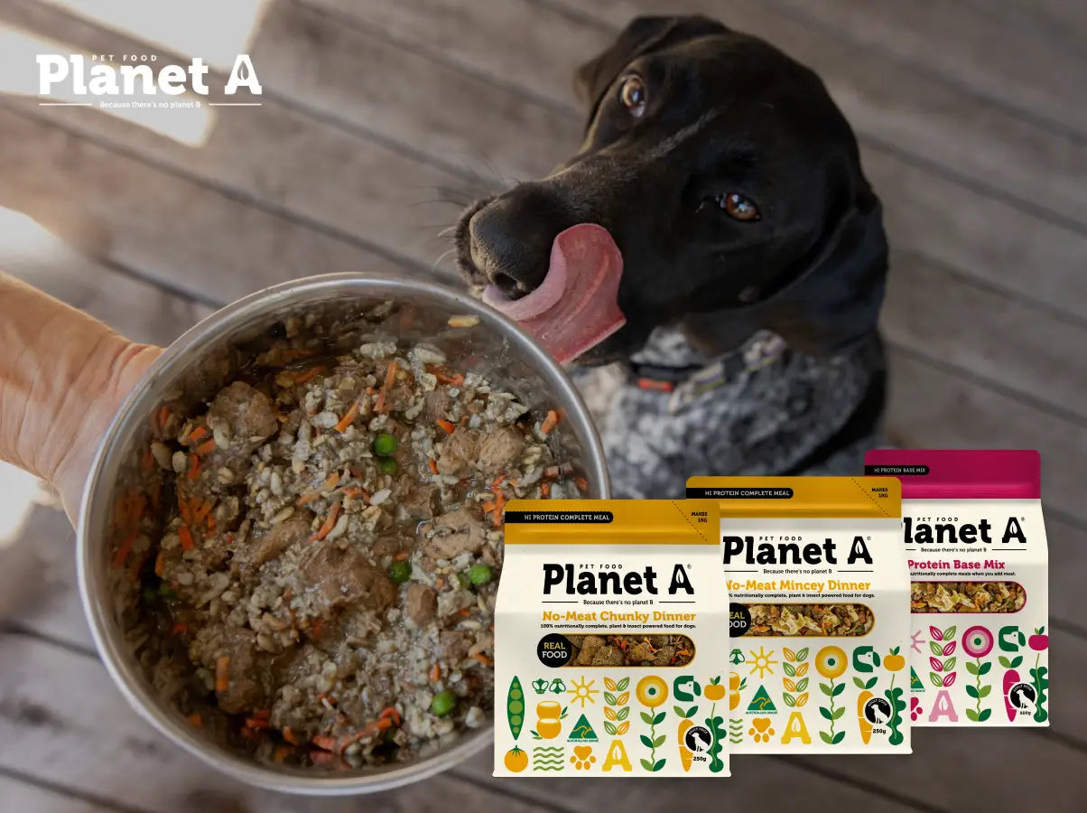 Fast forward a year or so and here we are with Planet A. Like most other dog parents, there's no way I want to feed dogs anything that's going to compromise their health. With Planet A, I'm confident we've got fresh alternatives to meat, that are still complete and nutritionally balanced. And there's no need to go vegan if you don't want to...a flexitarian diet is great for dogs, just like it is for people.
